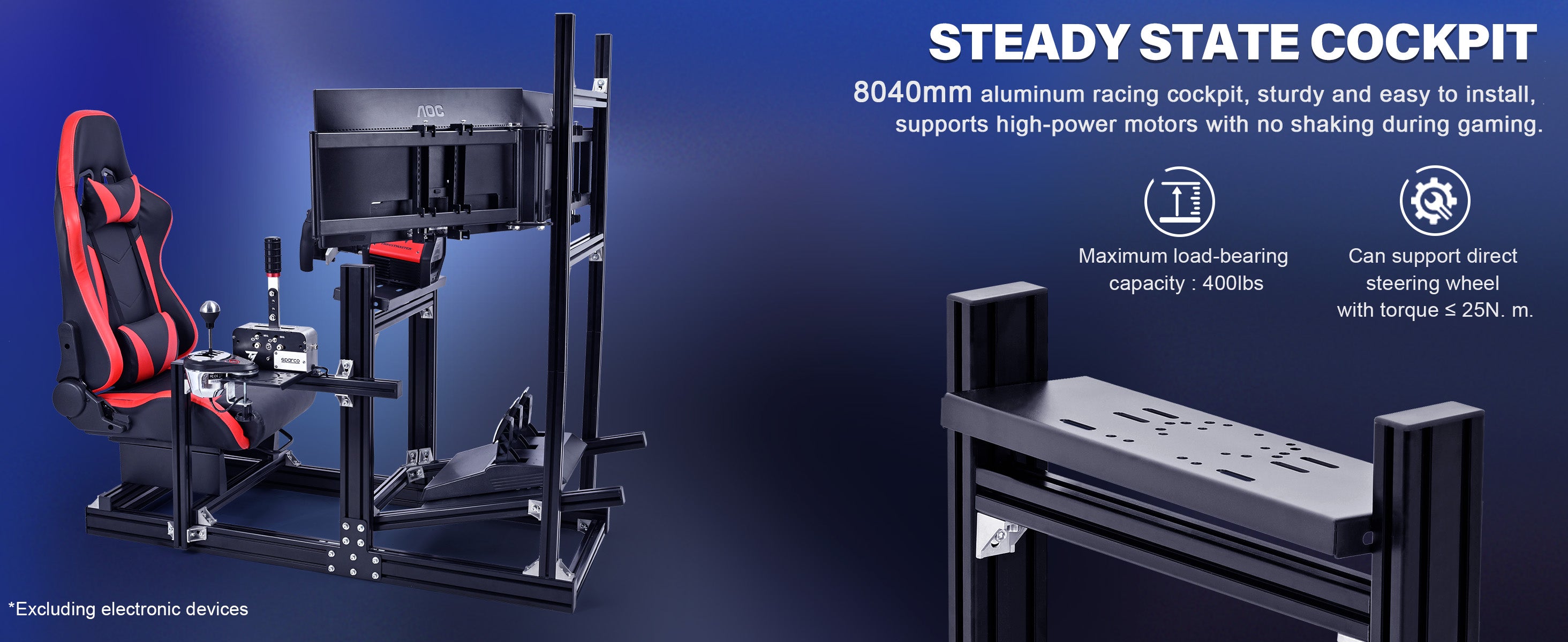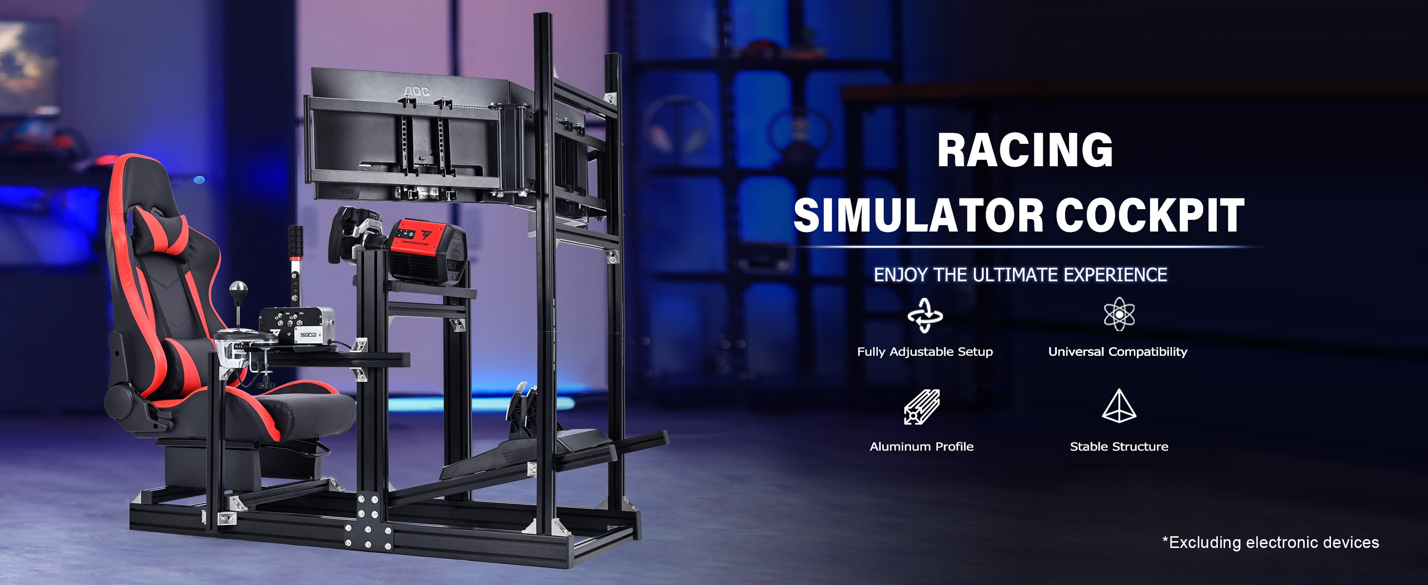 Marada 4080 Aluminum Sim Cockpit with Red Seat & Triple Monitor Mount,No Electronics Included