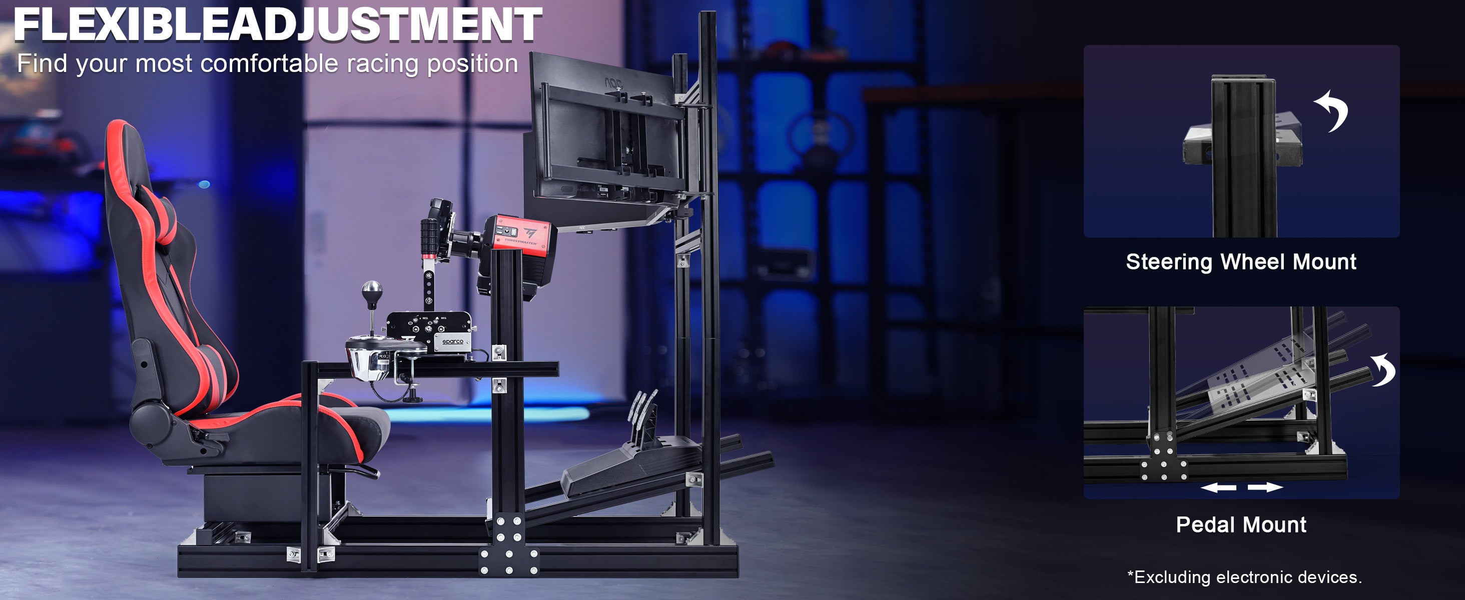 【Fully Adjustable】Full-adjust cockpit: stand, wheel, pedals & seat, meets pro needs
