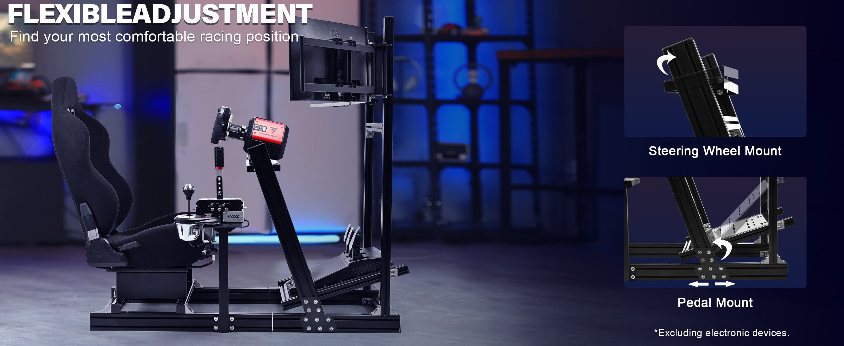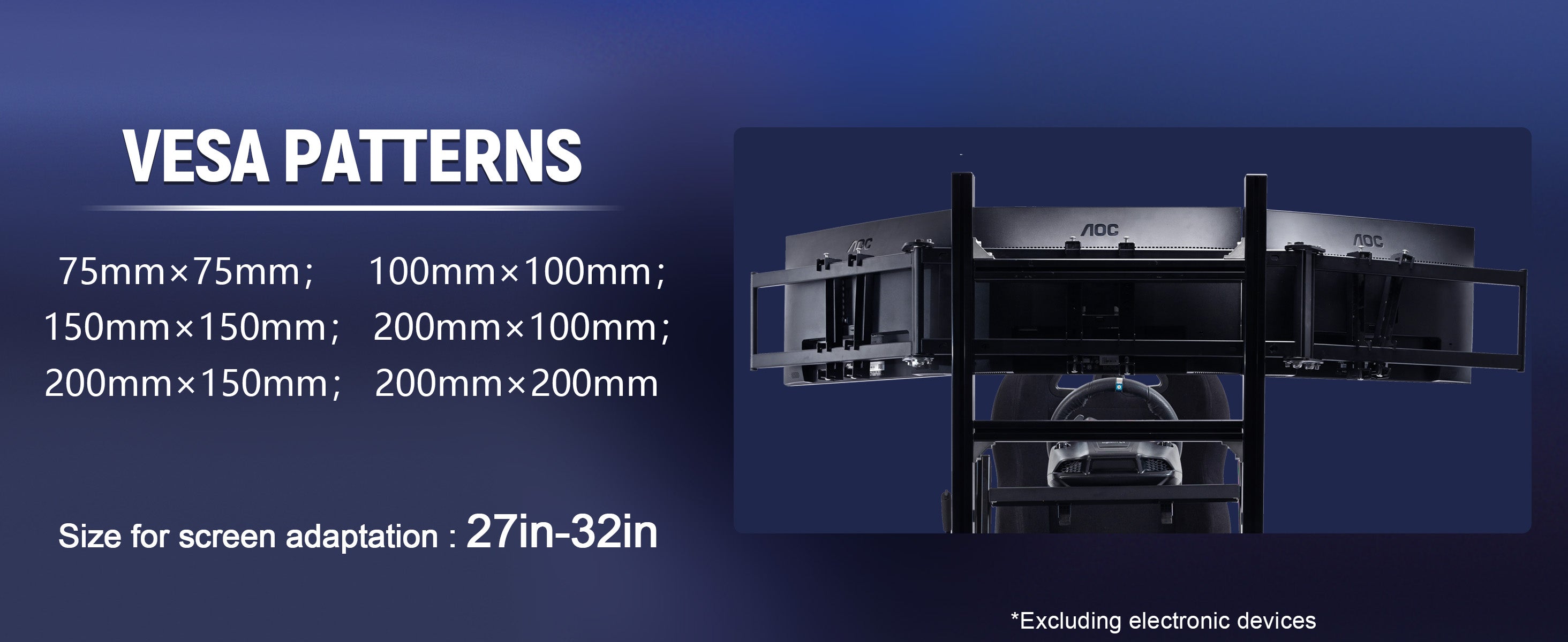【Triple Monitor Stand】 Supports three 24-32" screens with adjustable height and angle for immersive racing.