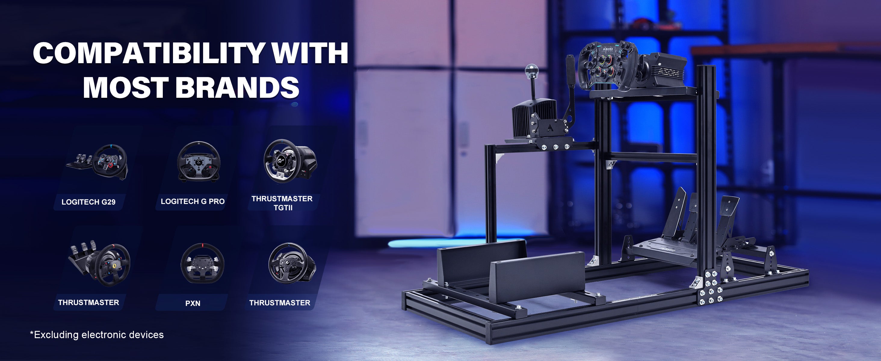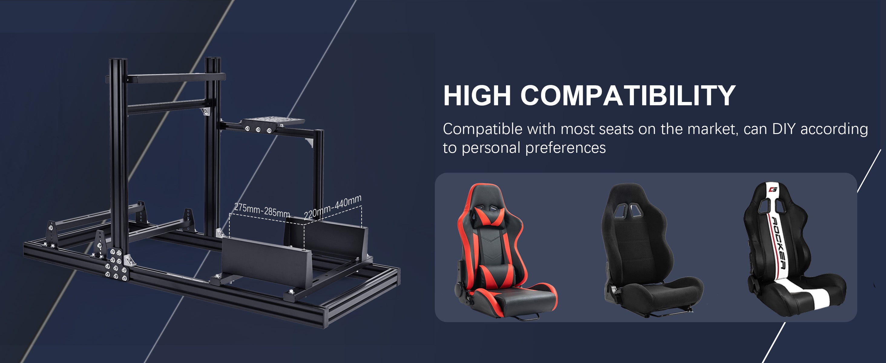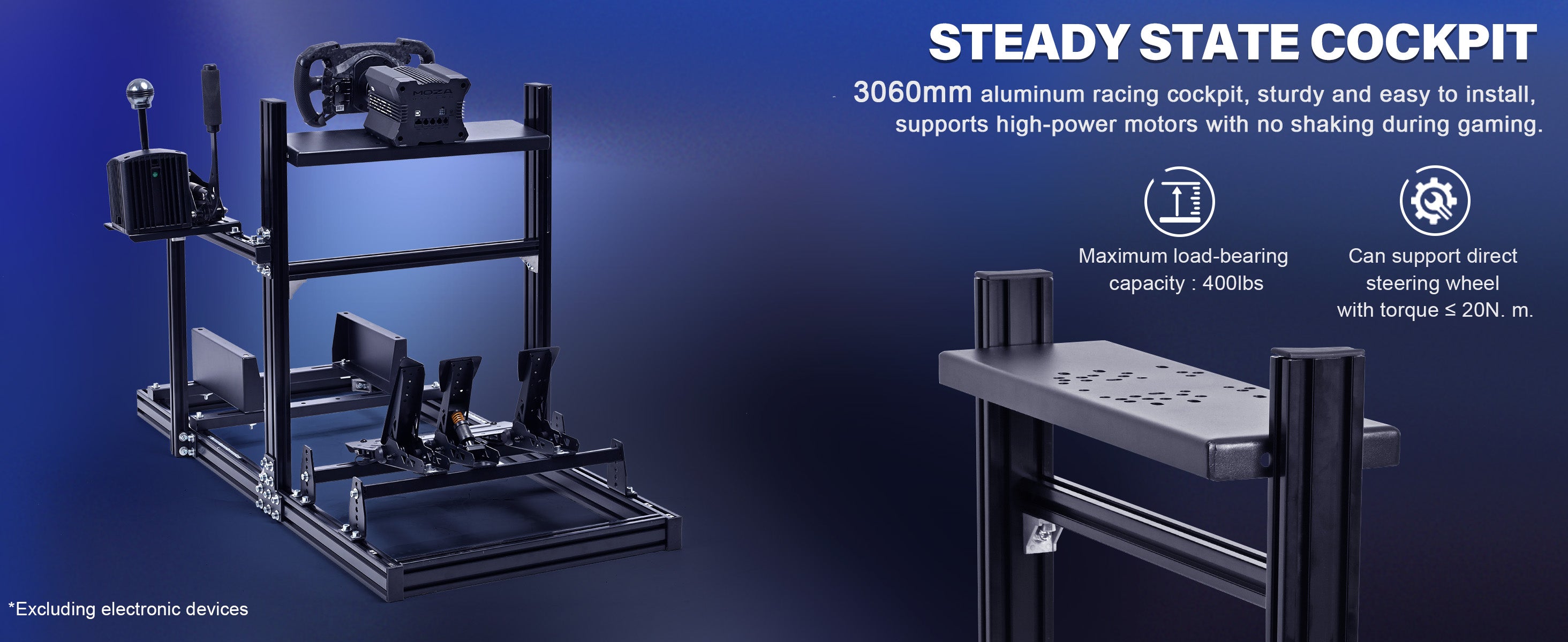 【High-Strength Aluminum Frame】Built with 3060 aluminum profiles and structural support rods for maximum rigidity. Fully compatible with high-torque force feedback systems.