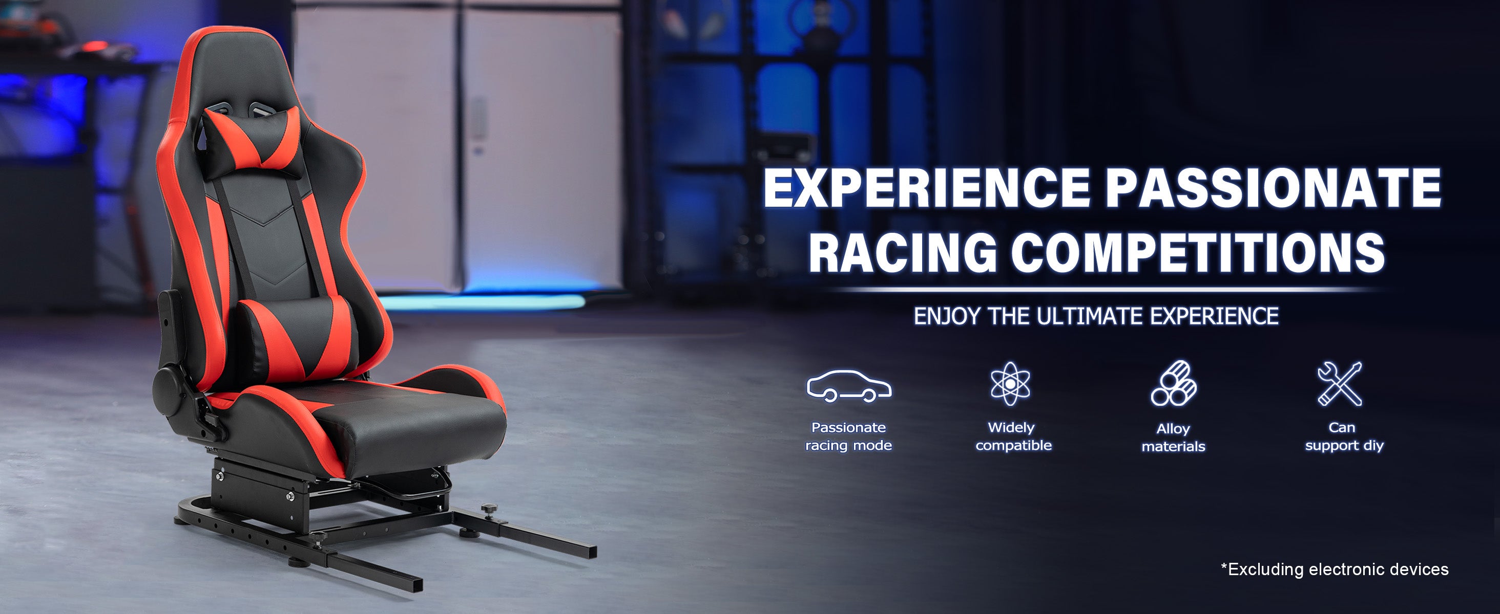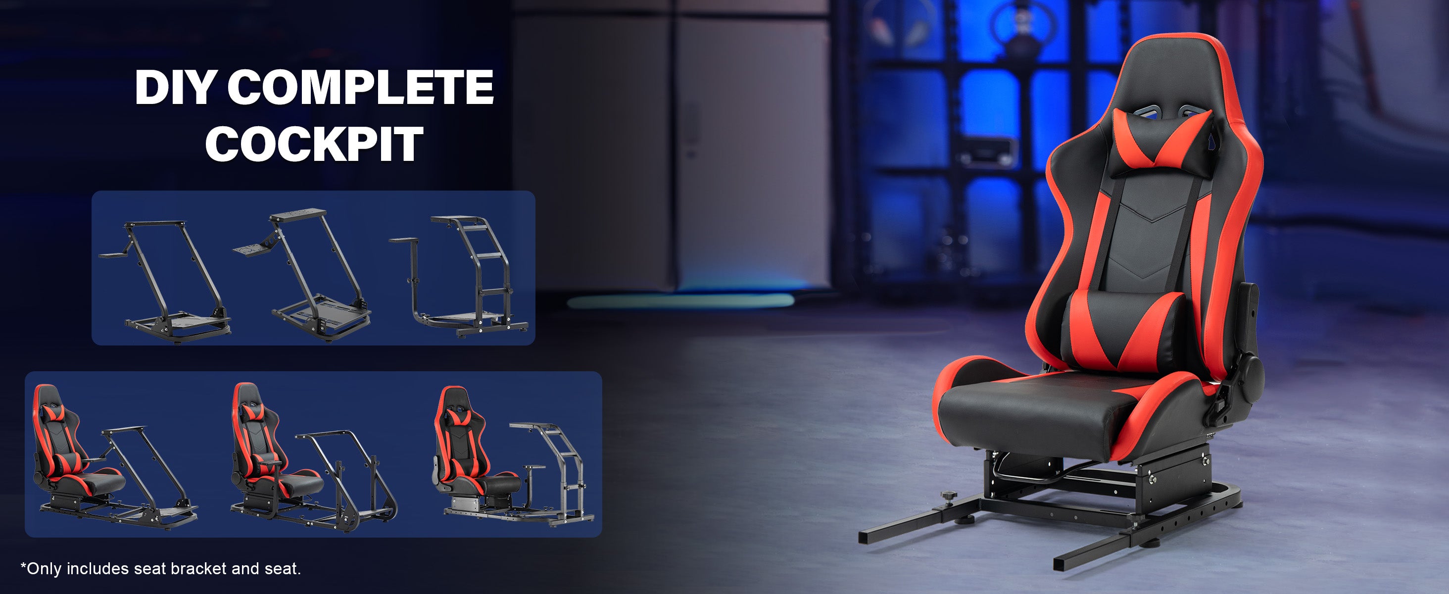 Marada Adjustable Racing Simulator Cockpit Rear Seat Frame - Expandable Design with DIY Support & Included Ergonomic Red Racing Seat
