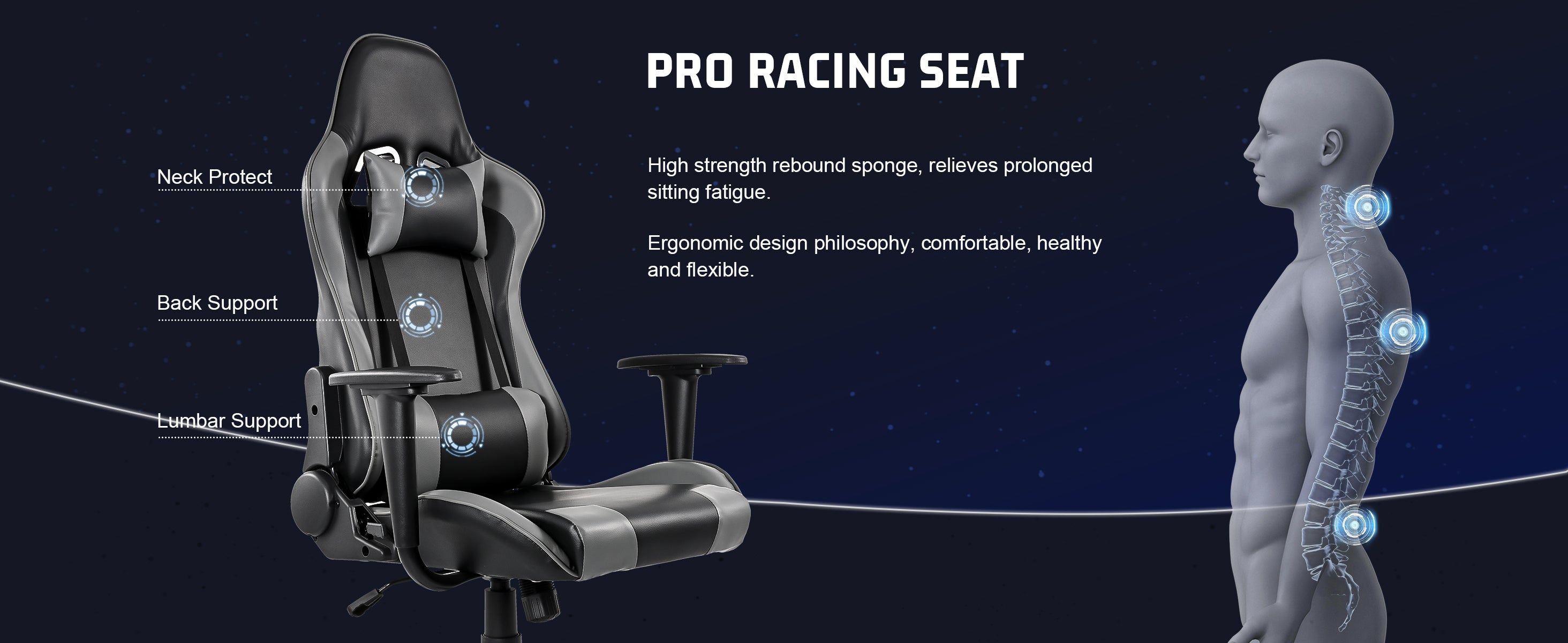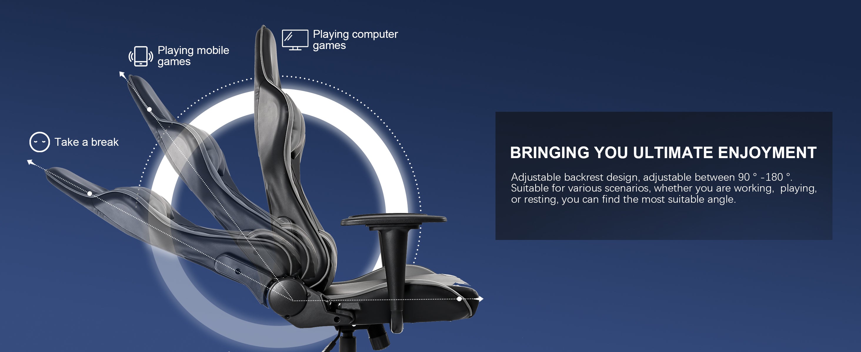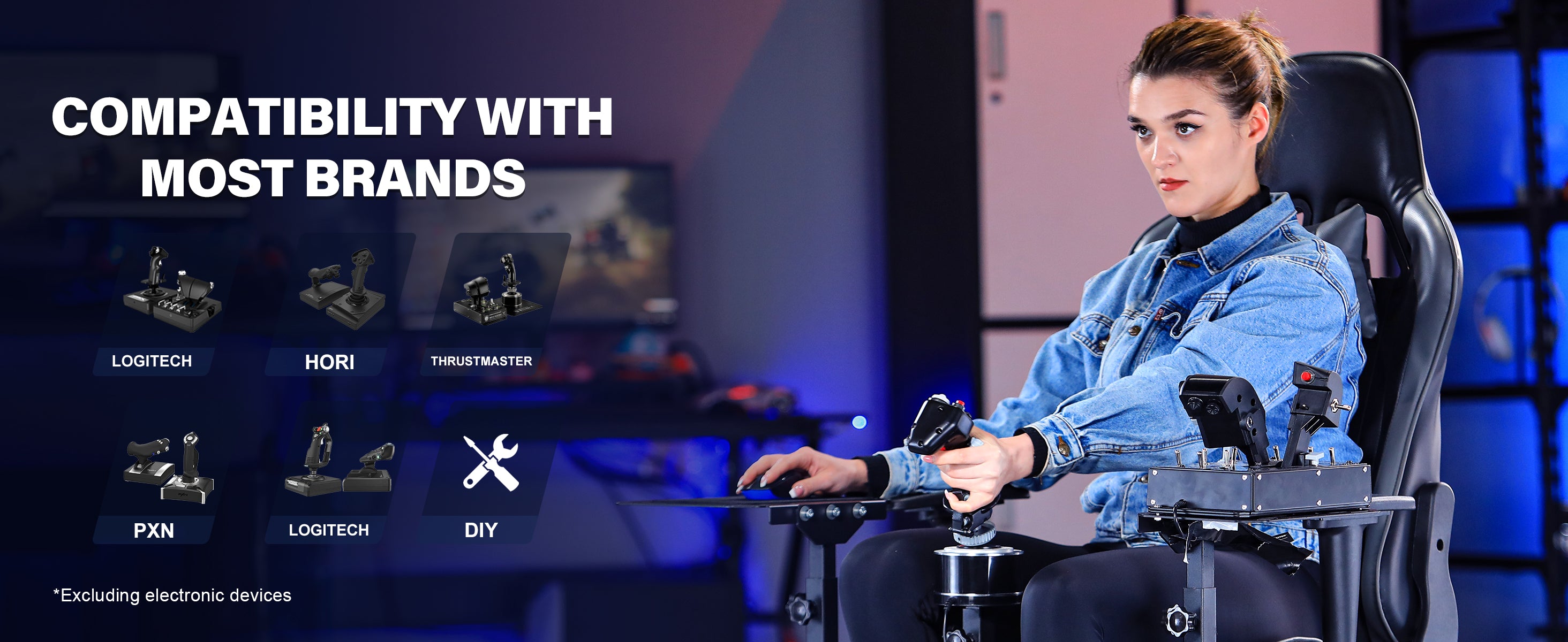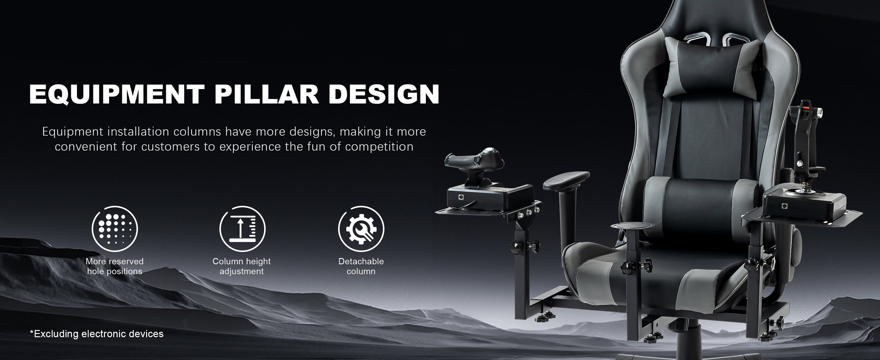 【Fully Adjustable】Seat back adjusts 90–180°, flight stick left/right swappable, seat levers adjustable forward/back and up/down.