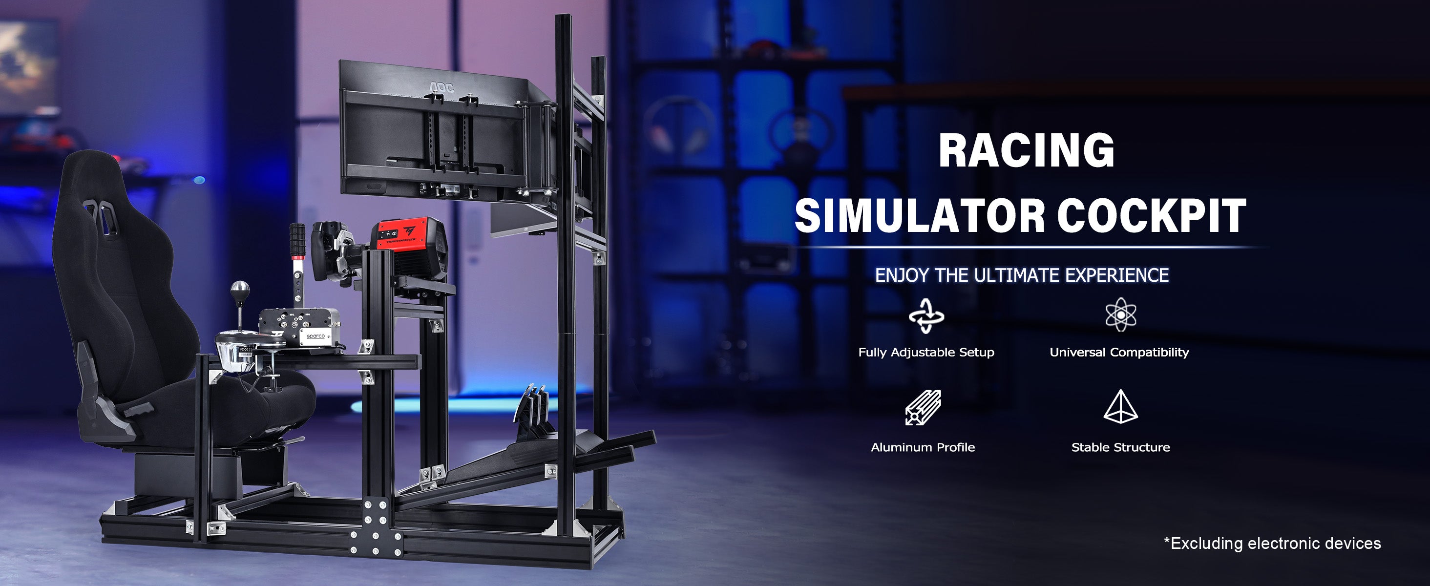 Marada 4080 Adjustable Aluminum Racing Cockpit with Monitor Mount and Black Seat | Compatible with Logitech G29 G920 & Thrustmaster T300