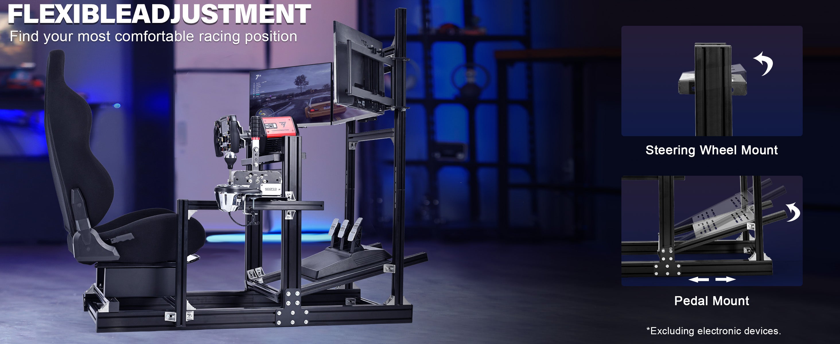 【Full Adjustability】Cockpit/steering wheel/pedals/seat adjustable, meets professional needs