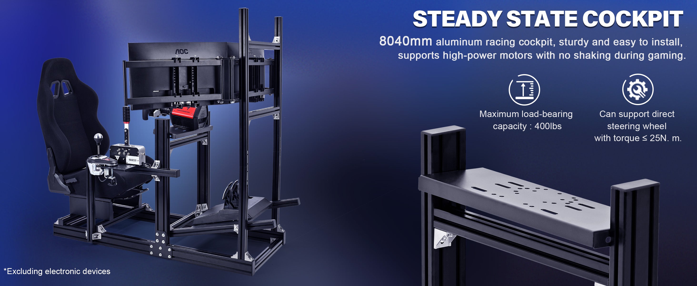 【Stable & Professional】4080 solid aluminum cockpit, joystick support bar, strong force feedback