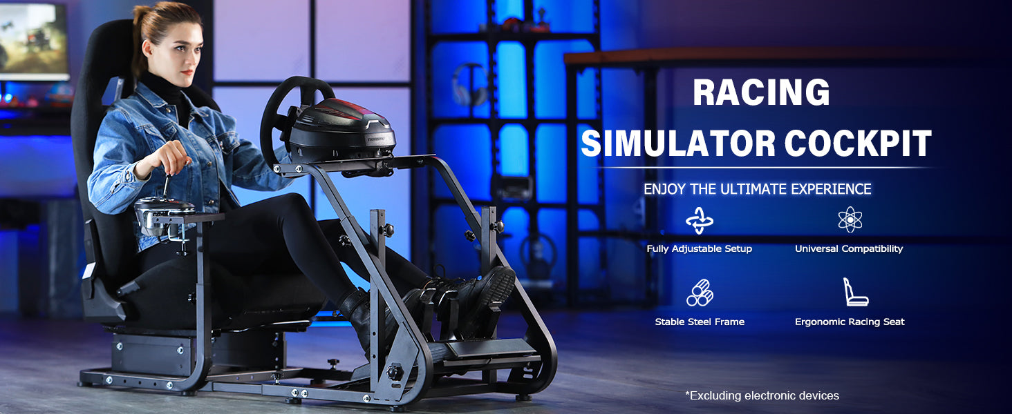 Marada Racing Cockpit Frame Compatible with G25 G27 G29 G920 Height Adjustable Racing Wheel Stand Wheel and Pedals Not Included(with Seat)