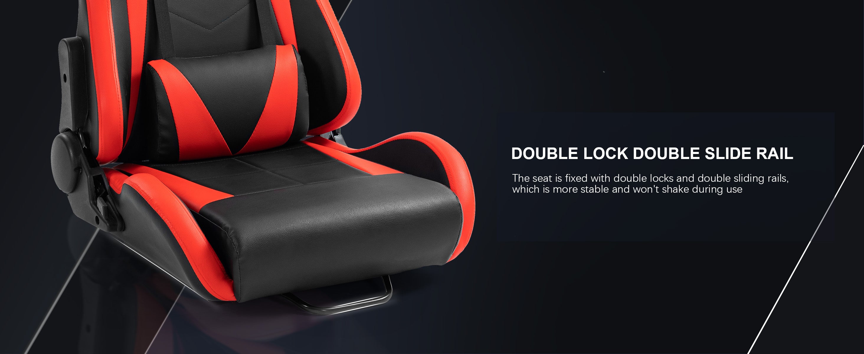【Design】Double‑lock slide rails for stable mounting; includes removable neck pillow and lumbar cushion.