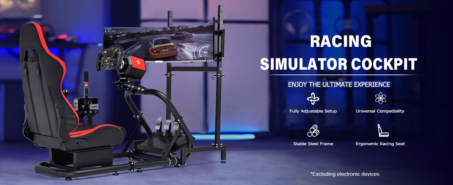 Marada Racing Sim Cockpit with Red Seat & Triple Monitor Stand Fit for Logitech G29