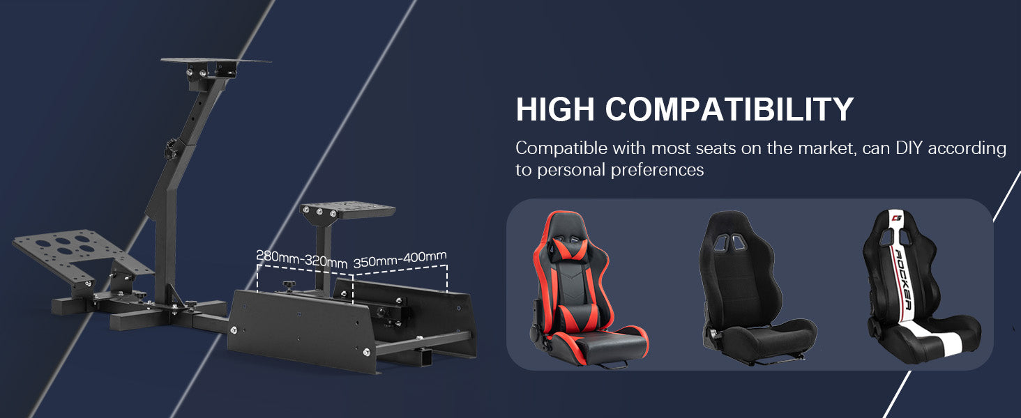 【Wide Compatibility】Compatible with clip-on or bolt‑mounted wheels, including Logitech G25‑G920 and Thrustmaster T300RS/T500RS. Supports drilling if holes do not match.