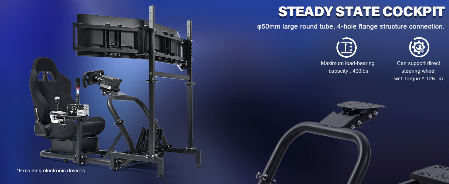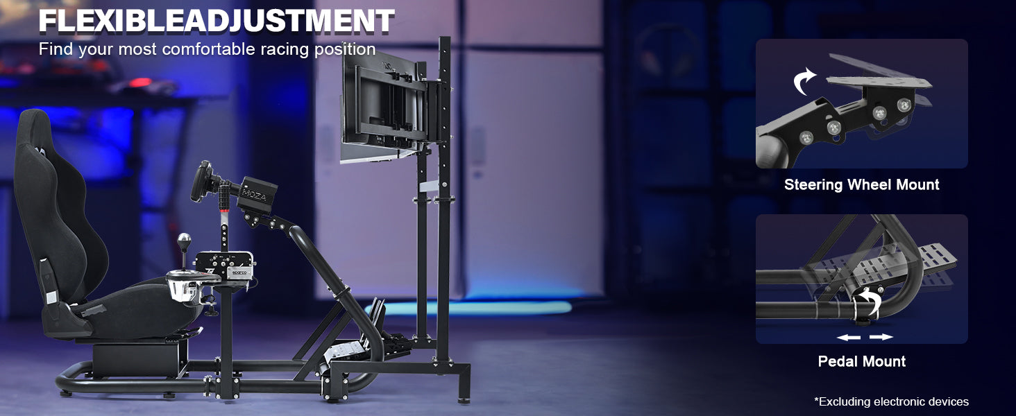 Marada Racing Simulator Cockpit with Black Seat & Triple Monitor Stand Fit for Logitech
