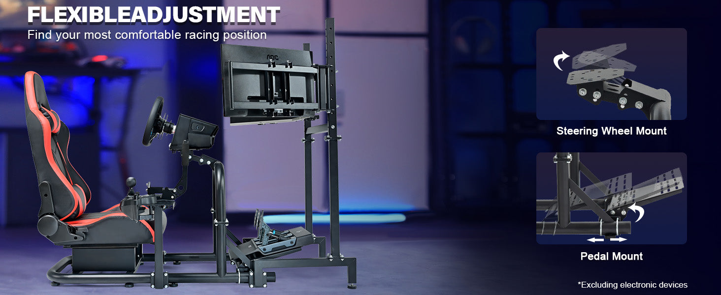 【Fully Adjustable Layout】Pedal and shifter positions, seat distance, and backrest angle are all freely adjustable.