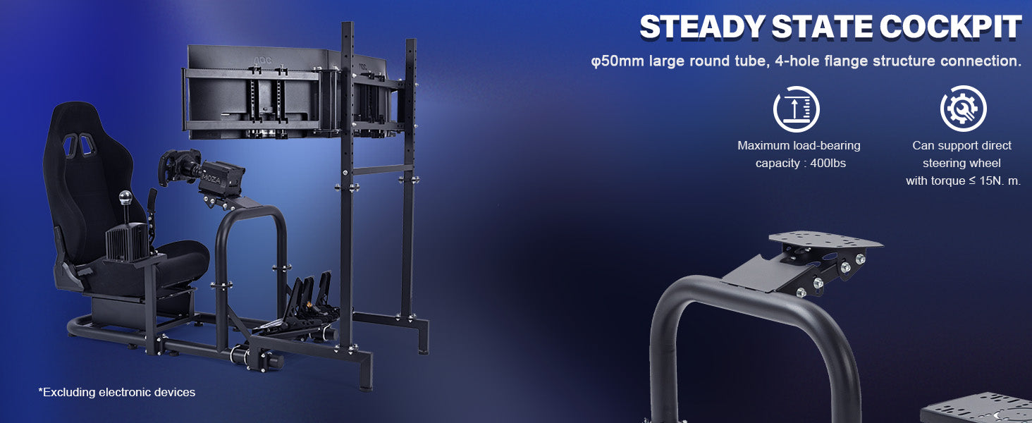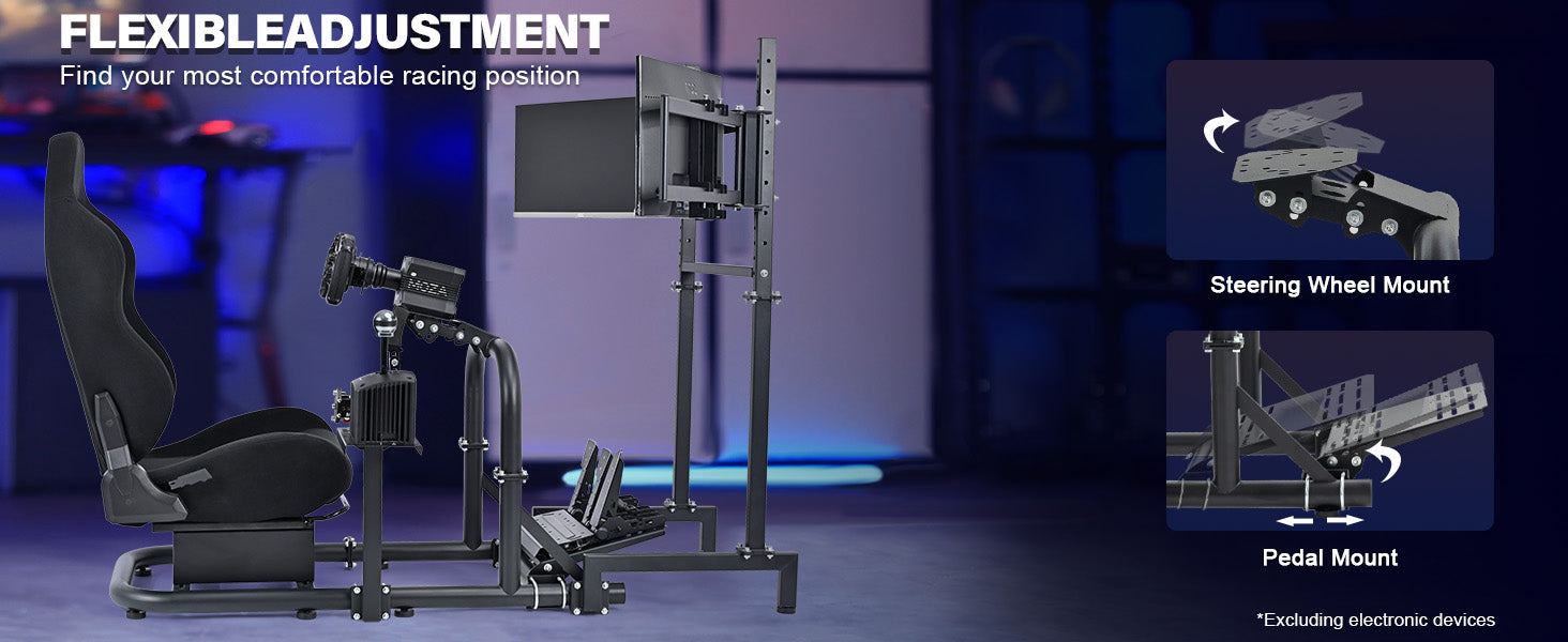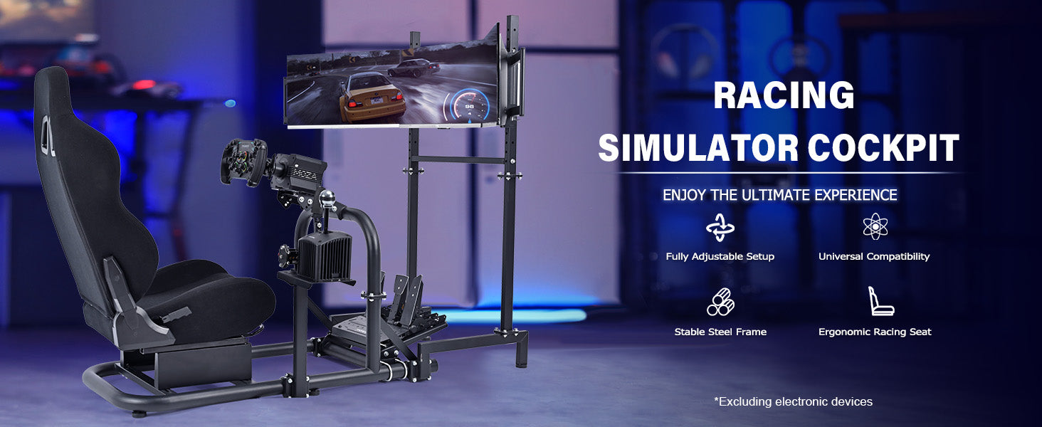 Marada Racing Simulator Cockpit with Triple Monitor Stand & Black Seat Fit forLogitech