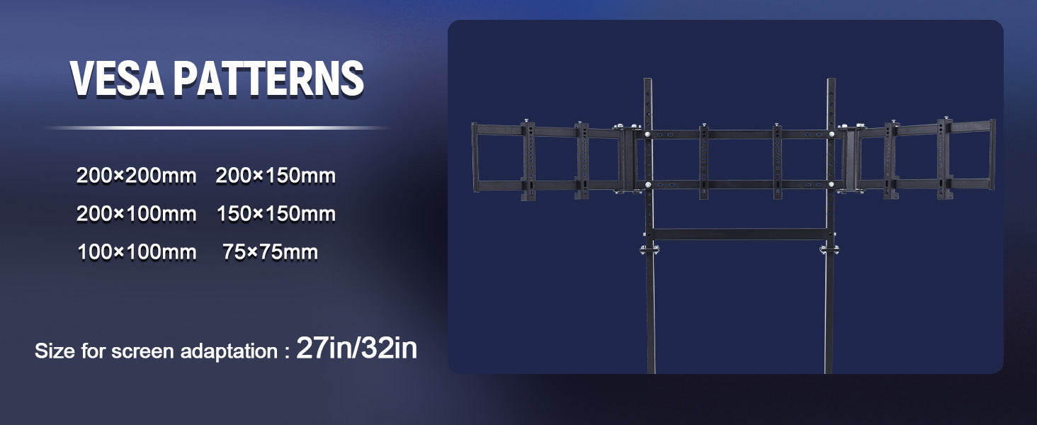 【Versatile Monitor Stand】Supports triple 27-32" monitors or a single 32-60" display. Weight capacity: 120 lbs.
