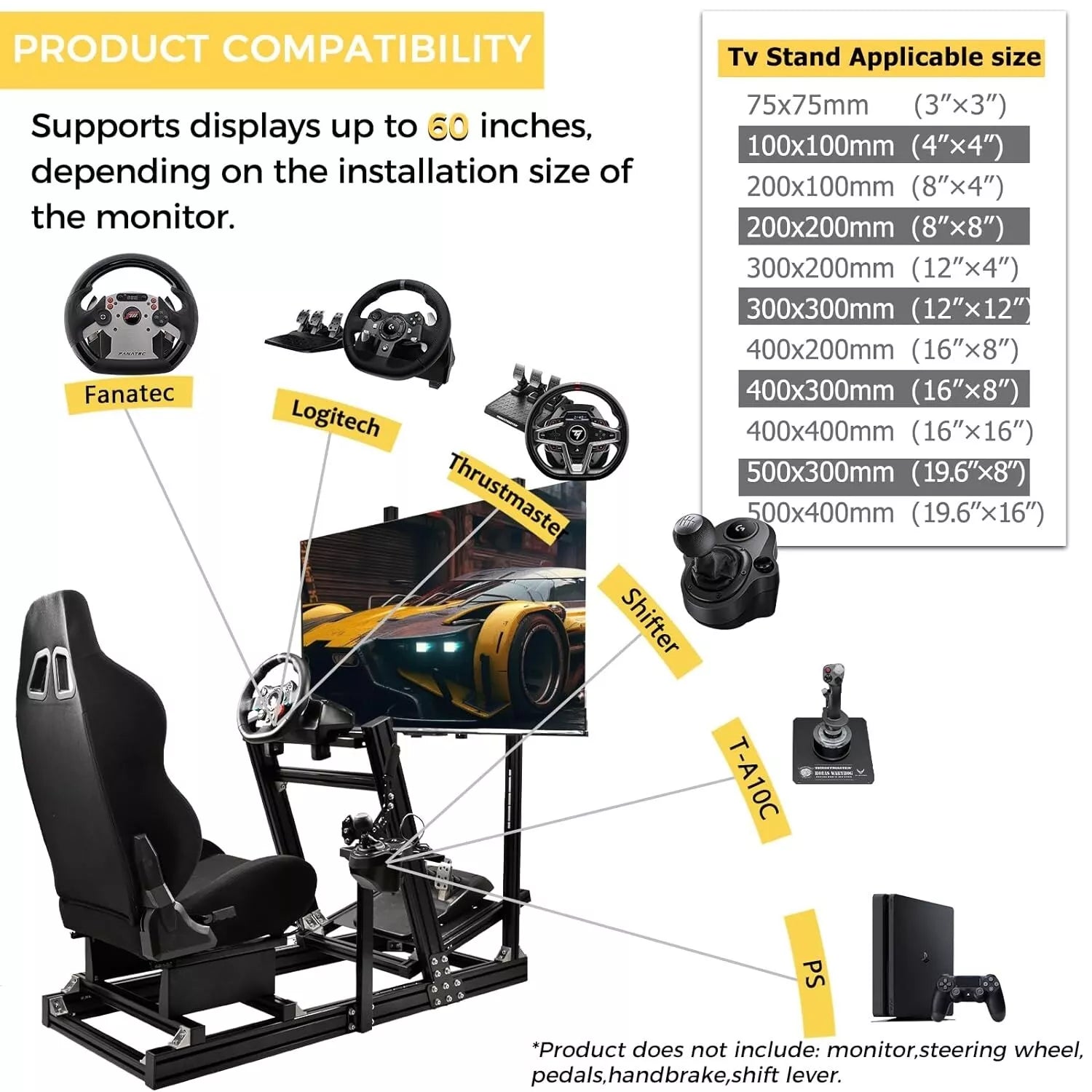 - 【Adaptable Devices】This simulator cockpit can be adapted to most of the popular devices, such as fit for Logitech G29 G920 G923, Fanatec CSL-DD, Thrustmaster T300RS GT T150