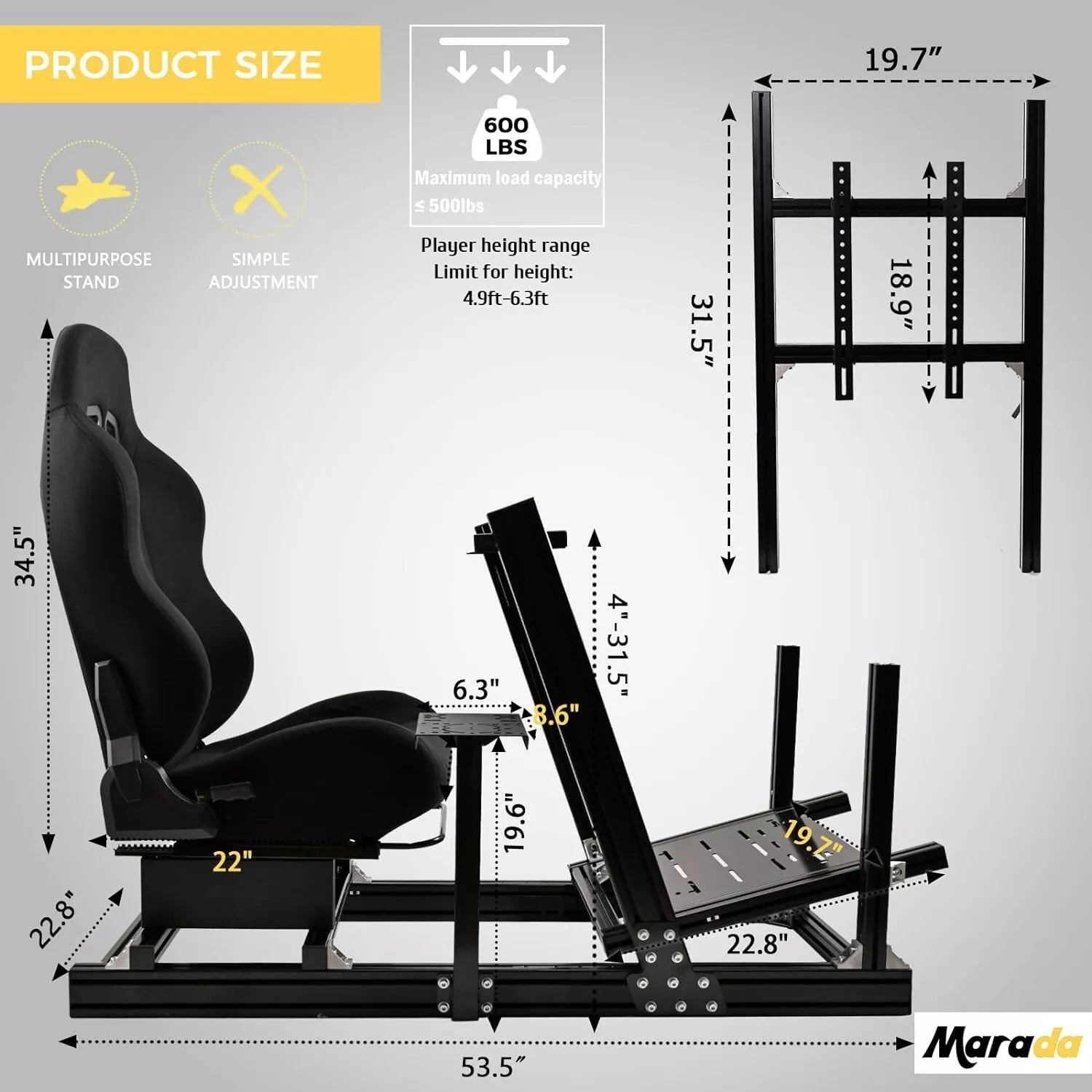Marada Sim Racing Cockpit Wheel Stand Adjustable Aluminum Fit for Thrustmaster T80,T150,T248X,TX,T300RS,Fanatec,Moza,Logitech G29,G920,G923,PXN Racing Frame with Seat
