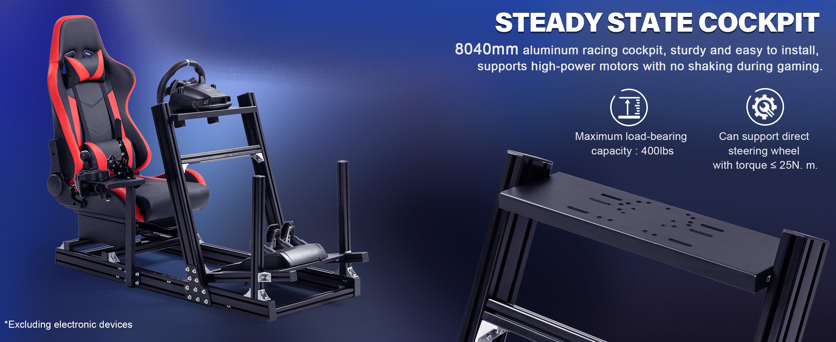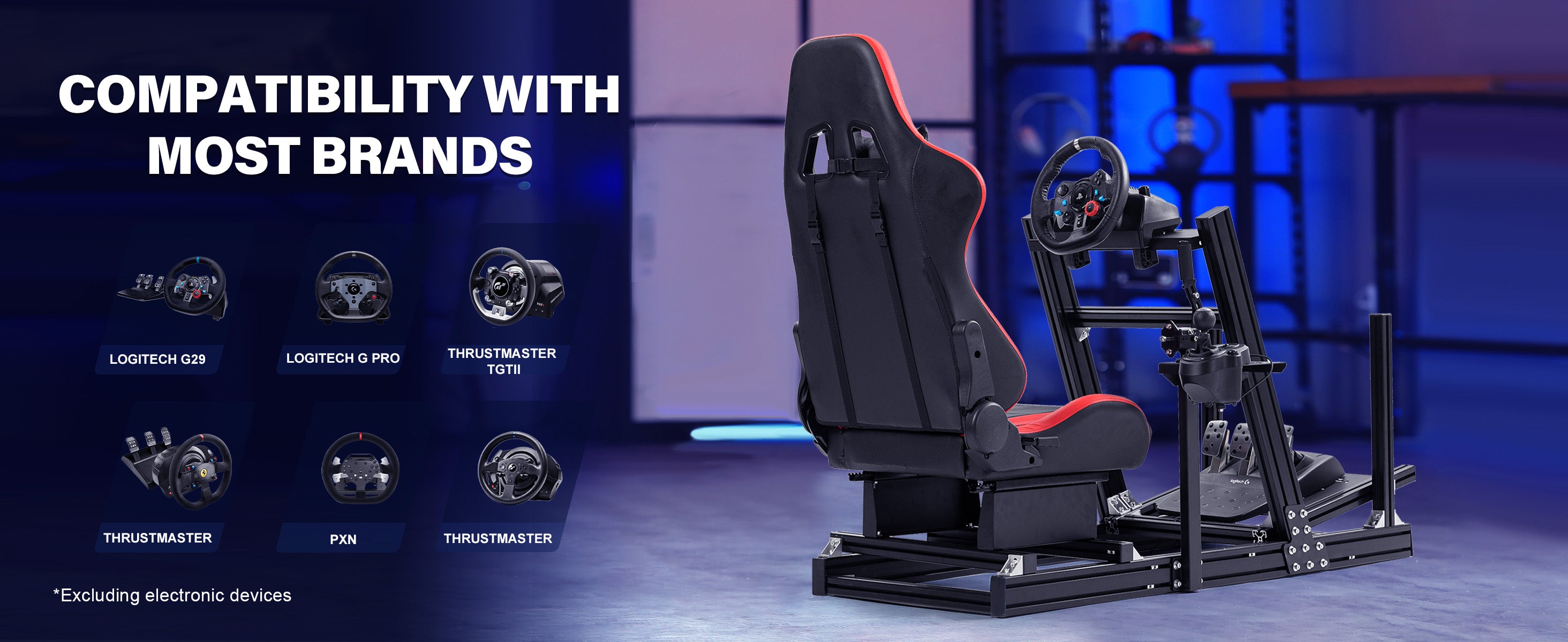 Marada 4080 Aluminum Racing Frame with Seat Compatible with Logitech Thrustmaster PXN